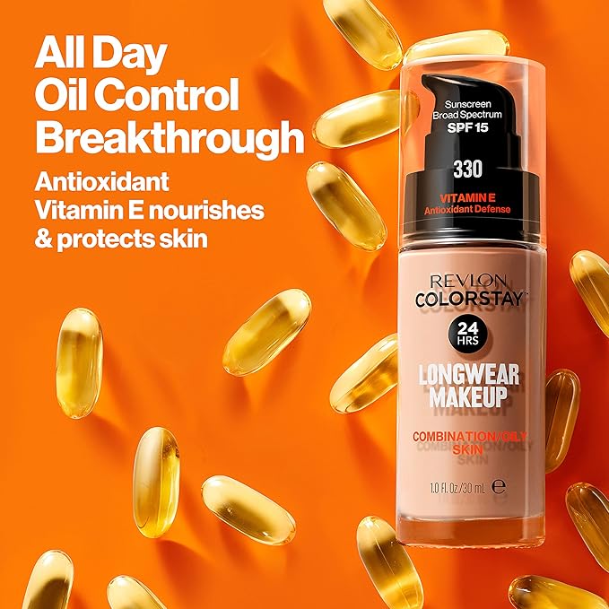 Revlon Liquid Foundation, ColorStay Face Makeup for Combination & Oily Skin, SPF 15, Longwear Medium-Full Coverage with Matte Finish, Nude (200), 1.0 Oz