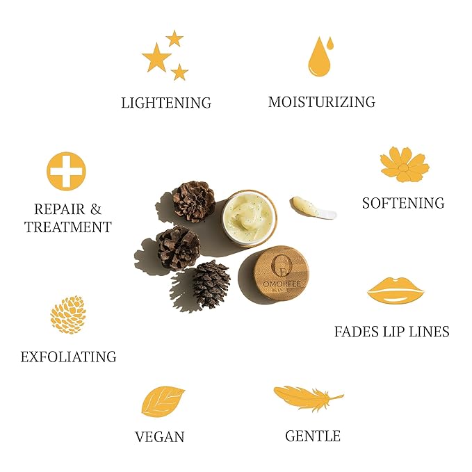 Omorfee 100% Organic Lip Lightening Scrub, Vegan Lip Exfoliator & Moisturizer, Gentle Overnight Lip Mask Treatment, With Kojic Acid, Vitamin E & Natural Beads for Dull, Dry & Dark Lips- 20g/0.70Oz