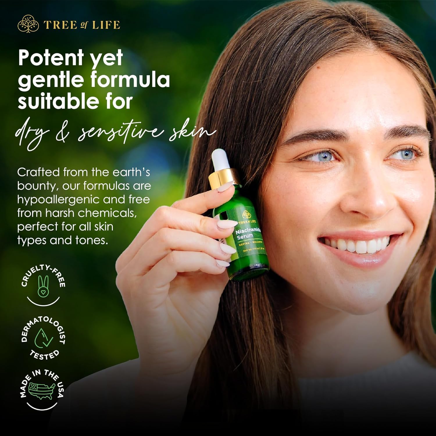 Tree of Life Beauty Niacinamide Vitamin B3 Serum, Hydrating Face Oil for Dark and Age Spots, Tightens Pores, Facial Serums for Sensitive Skin Care with Hyaluronic Acid and Vitamin E, 2 Fl Oz