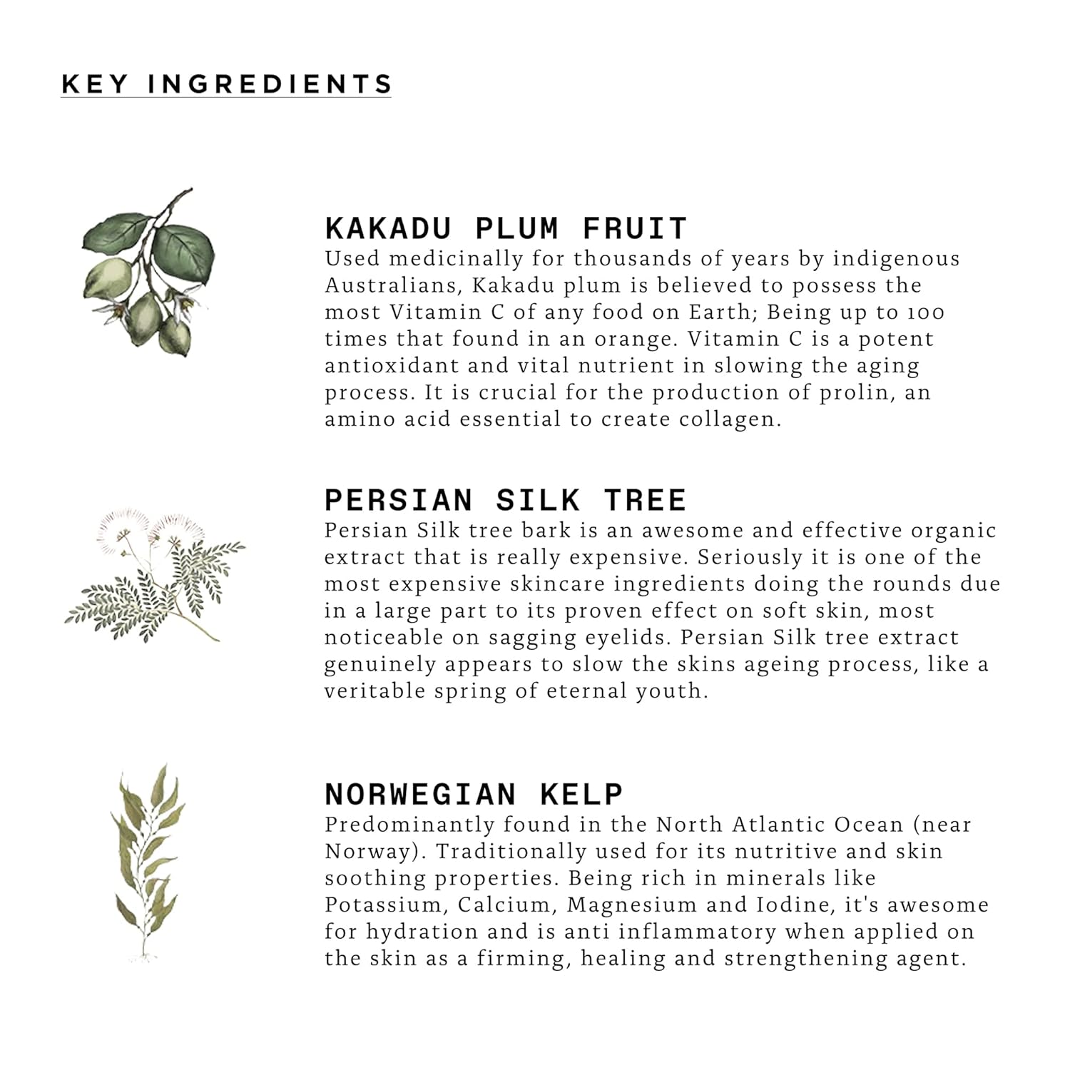 - 97% Natural Based Ingredients - Kakadu Plum Fruit Extract, Norwegian Kelp, Persian Silk ο»ΏTree, Swamp Maple Bark Extract, Horopito, Rosemary Extract to name a few!