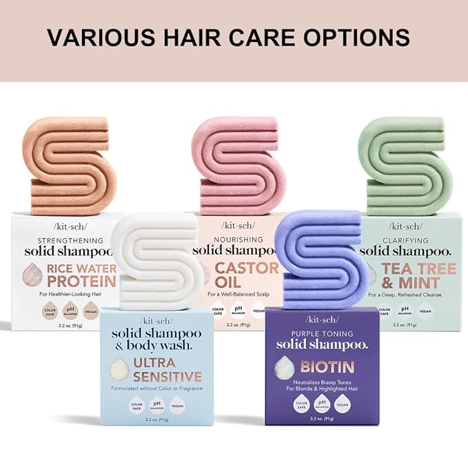 - MADE IN THE USA β ETHICAL, EFFECTIVE HAIR CARE - Proudly made in the USA, this cruelty-free, Leaping Bunny Certified shampoo bar delivers salon-quality results with clean, conscious ingredients. For optimal hydration and scalp balance, pair it with the Kitsch Tea Tree & Mint Conditioner Barβa perfect combo for healthier-looking hair and a refreshed scalp.