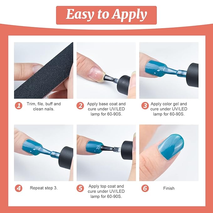 - Salon Quality Gel Nail Polish: 32 popular and beautiful colors nail polish, include orange, gray, flesh pink, rose red, green, blue, purple, etc. glitter styles for all occasions. Every colors can be harmoniously matched. You can DIY your nails the way you want.