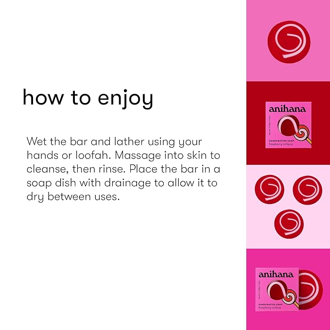 ANIHANA Handcrafted Natural Soap with Coconut Oil, Gentle Cleansing, Paraben Free, Refreshing Raspberry Lollipop Scent, 4.23 oz