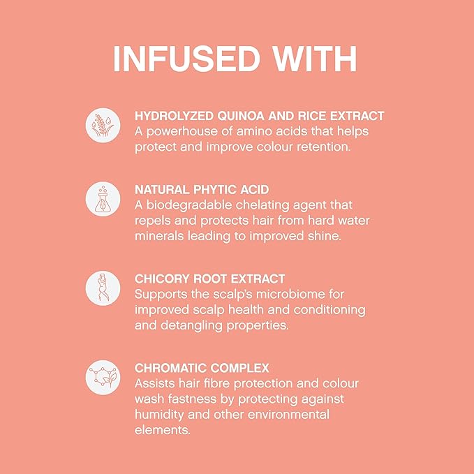 - Acidic pH Shampoo: Our pH balanced shampoo gently purifies without stripping colour, keeping your hair nourished and hydrated