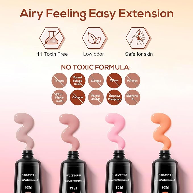 - Healthy,Natural,Strong,FlexibleοΌJEWHITENY poly gel made with non-toxic ingredients keeping your nails healthy with a low odor formula!Has high strength and toughness without cracking or peeling. superior to other nail extension products, and fits your nails seamlesslyγThe new upgraded formula makes your lengthened nails as flexible, strong and lightweight as natural growing nails.