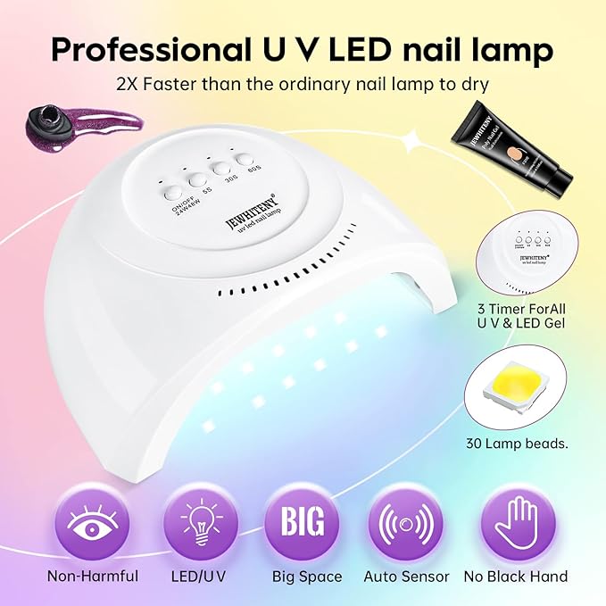 - [JEWHITENY POLY GEL&GEL Nail Polish NAIL KIT ]:1* 48W Nail lamp,14*15ml Poly nail gel, 27*5ml Gel nail polish,1*Base coat,1*Top coatοΌ1*Matte top coatοΌ1*30ml Poly gel slip solutionοΌother basic nail art tools.