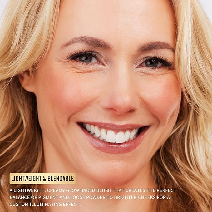 - GLOW ON BAKED BLUSH-Creamy, blendable blush powder with modern color to brighten cheeks for glowing that shape, contour and highlight your best facial features