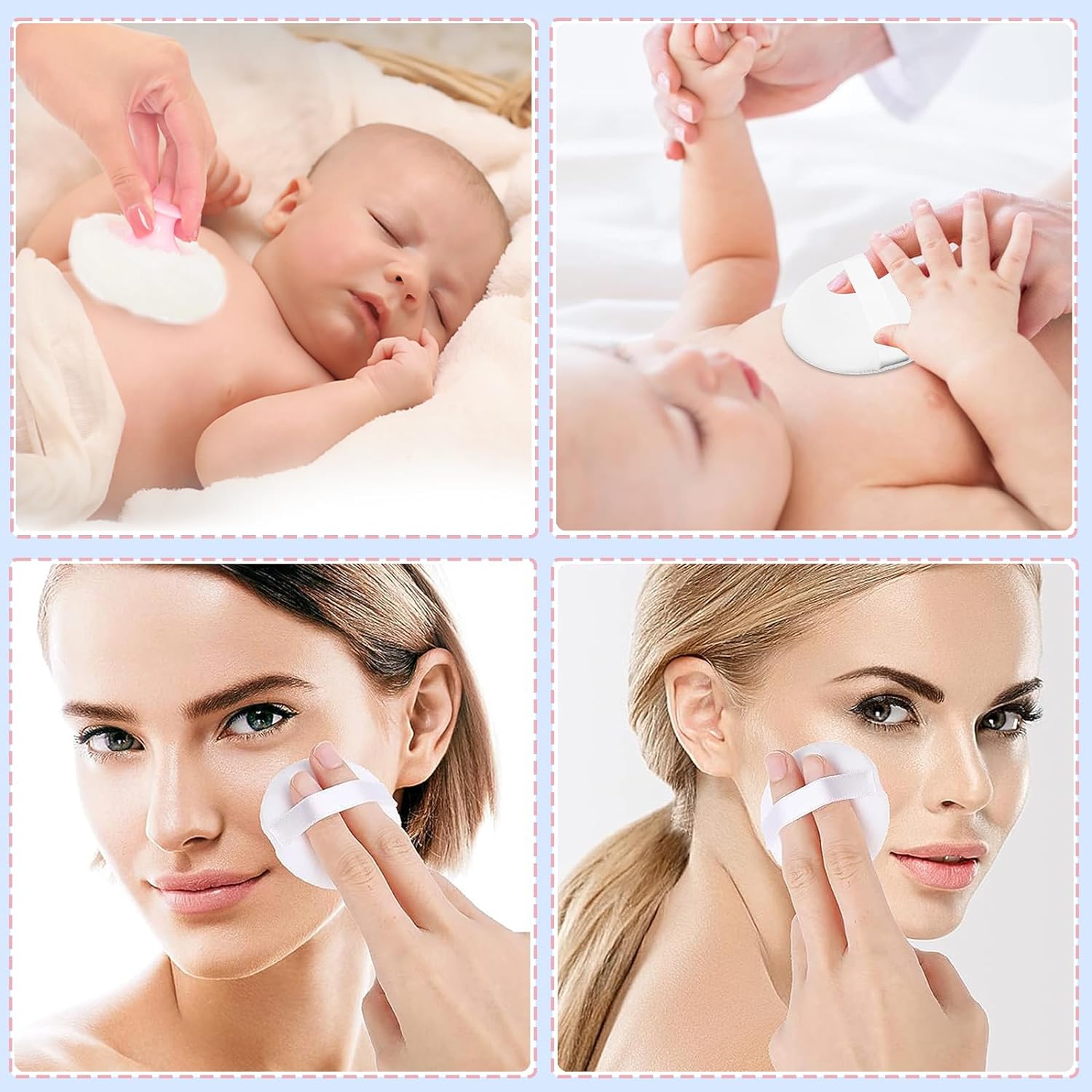 - 【2 Body Powder Puffs】: Considering the daily needs of our customers, our body powder container is equipped with 2 body powder puffs which made of delicate and smooth touch artificial wool,odorless, individually packaged. The large powder puff with a handle can directly take an appropriate powder apply for body, fast and convenient! The small puff (2.36 ") can take a small amount of powder more delicate and apply evenly on baby skin.