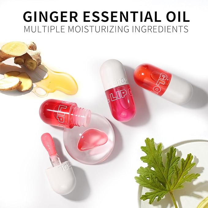Lip Plumper Raspberry (0.19 Fl. Oz.) Lip Gloss Natural Lip Oil 2in1 Lip Care Serum for Beautiful Fuller-Looking Lips, Hydrating & Reduce Fine Lines,Tangerine