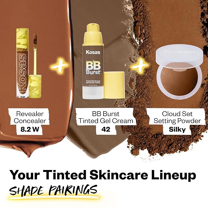 Kosas BB Burst Tinted Face Gel Cream - Supports Healthy Collagen, Smoothes Skin, Hydrates & Moisturizes - Lightweight Buildable Coverage- Deep Neutral Warm 42, (1 Oz/30 ML)