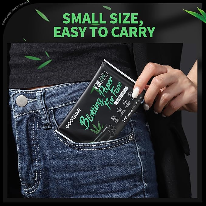 - Abundant & Portable Blotting Paper: Set of 200pcs, 100*70mm large oil blotting sheets for face, ensures you have an abundant supply wherever you go. Packaged in a small and compact format, these face blotting paper effortlessly fit into your purse, backpack, or pocket, making them perfect solution for maintaining a fresh, matte finish to your skin when going out.