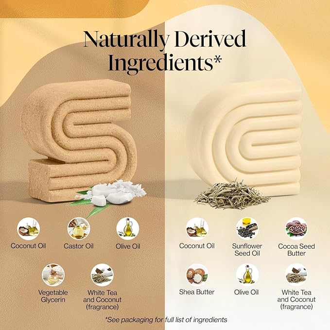 - HYDRATING COCONUT OIL + PLANT-BASED POWER – Infused with coconut oil, shea butter, and pure essential oils, both bars deliver intense nourishment to dry, damaged hair. This powerful pairing helps revitalize strands, leaving curls soft, resilient, and healthy-looking after every use.
