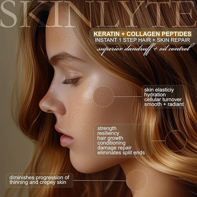 - With a proprietary instant absorption formula that drives nutrients past the molecular level and into the cellular level. Enhances the binding of Keratin and Collagen peptides that ultimately result in the repair and strengthening of skin and hair beyond the molecular level. During the amino acid to peptide formation, water molecules are released to add hydration to your skin and hair so a conditioner or moisturizer is unnessary. Neutral pH and as gentle as pure water.