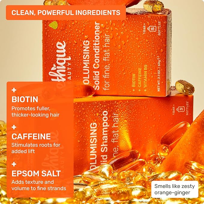 - BOOST YOUR ROOTS: Say goodbye to flat, lifeless hair! Our Volumizing Shampoo Bar promotes body and lift for fuller, thicker-looking hair with every wash. Bring volume back to your hairstyle with natural ingredients like biotin promoting hair growth, caffeine stimulating roots, and epsom salt adding texture and volume.