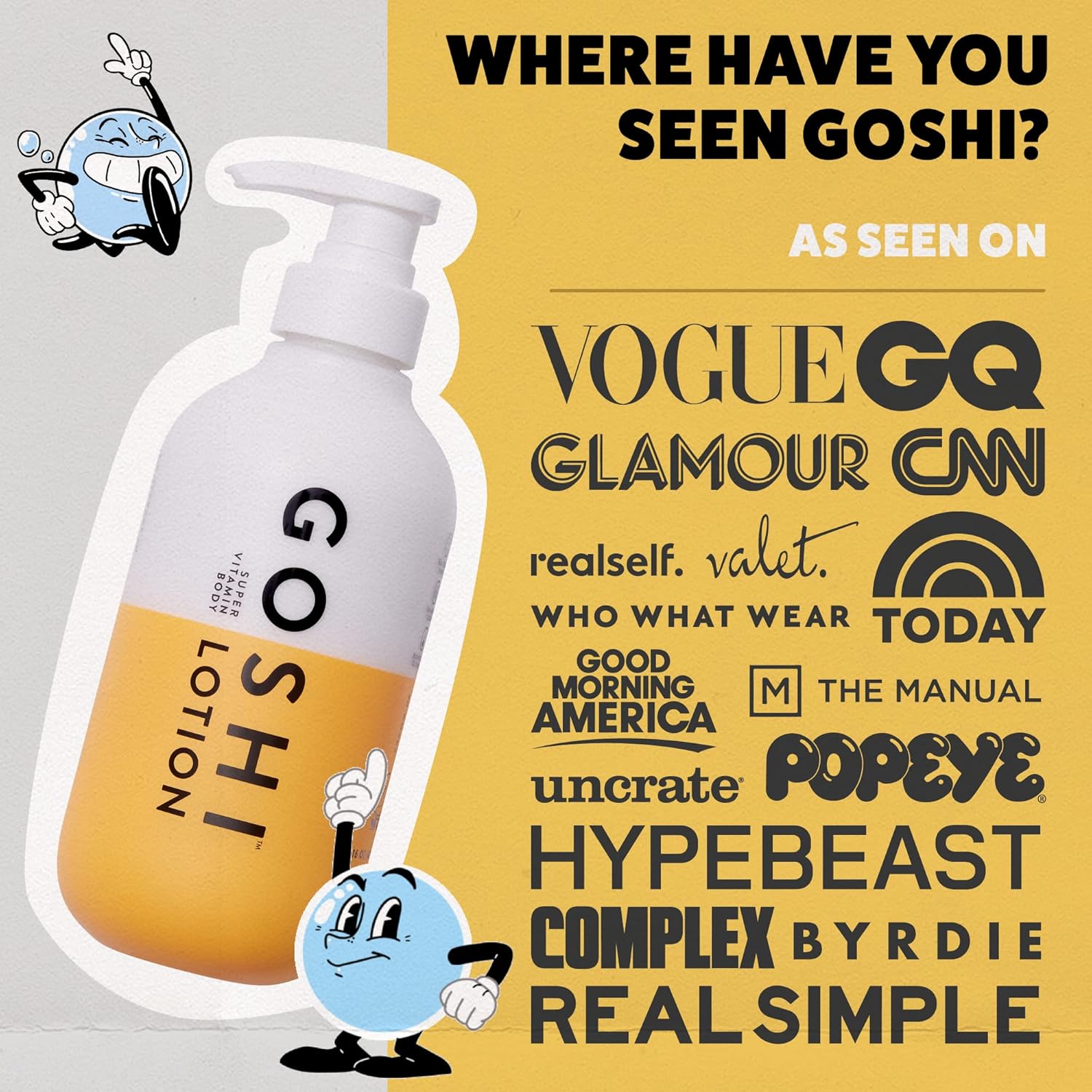 - pH-Balanced Formulation: Finally, a body lotion for men and women that feeds and nourishes your body’s unique biome. After 2 years in the making, GOSHI has finally perfected the formula that matches all skin types and addresses the underlying cause of dry or oily skin. So get ready to be the softest you’ll ever feel.