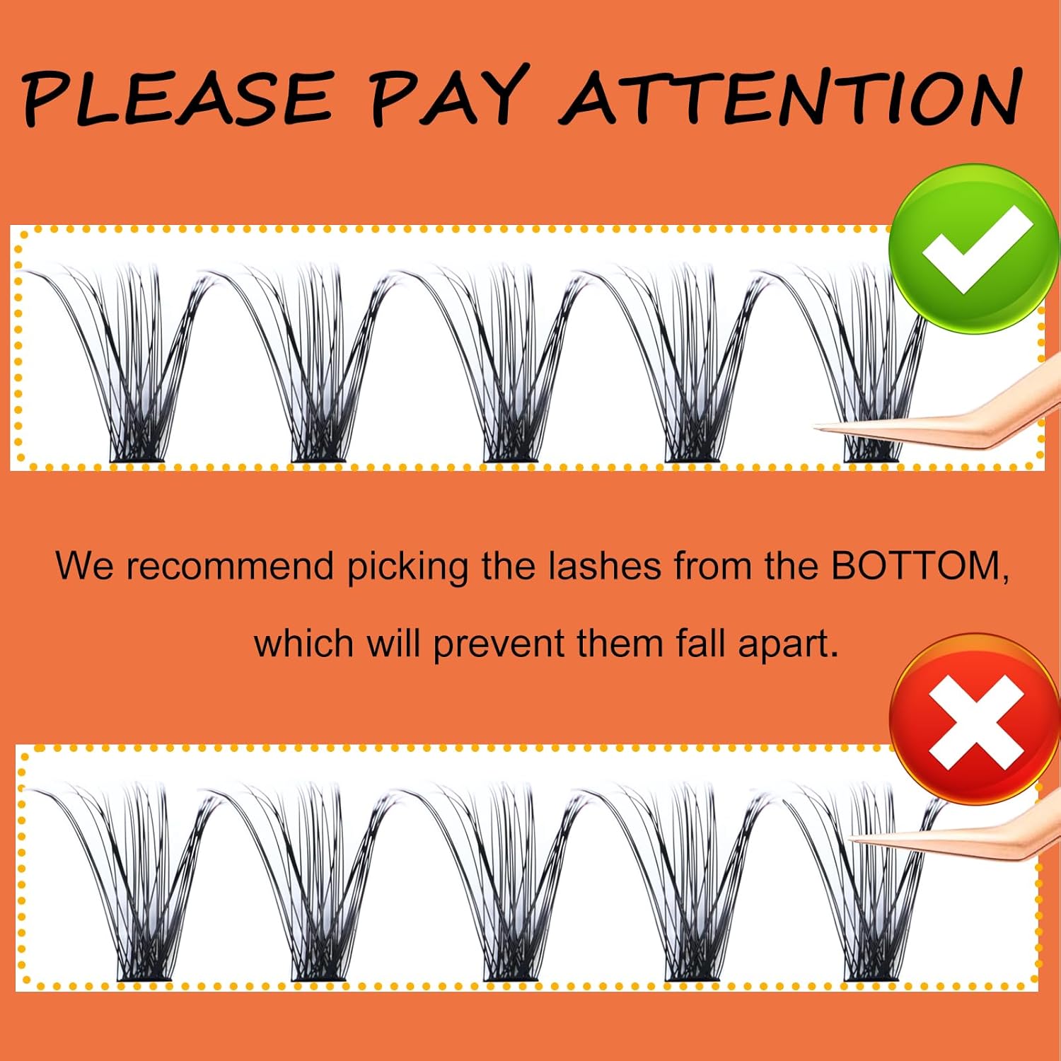 - 3 Steps Application: First Scrape off any excess lash BOND and brush a thin layer of bond UNDER the natural lashes. Then Gently take the lash clusters off with the tweezer and apply them underneath your natural lashes. After applying the full set, dab a light coat of lash SEAL under the lashes at the base to lock them in place.(You can try our lash bond and seal)