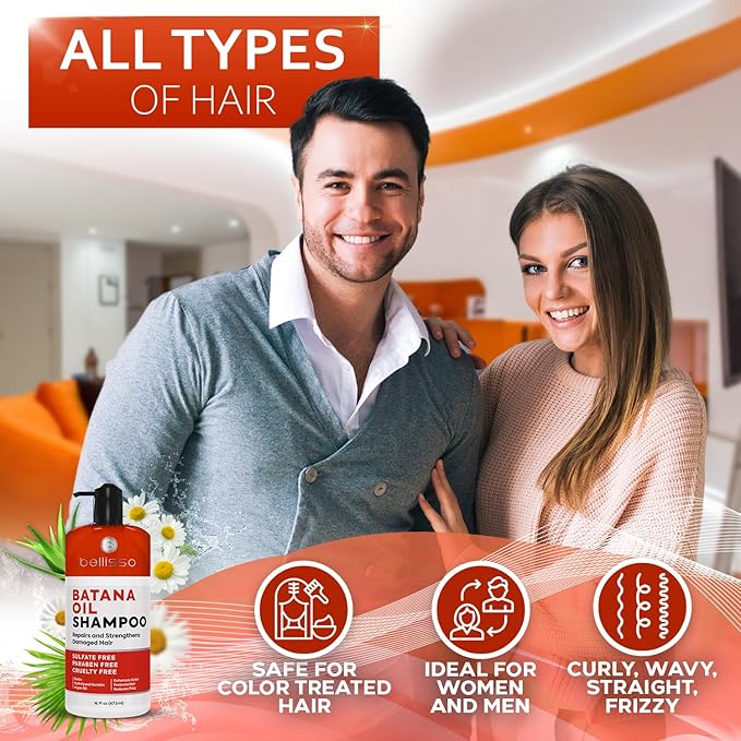 - ZERO SULFATE FORMULA: Bellissoβs batana shampoo is made without sulfates, parabens, or harsh additives, and never tested on animals. We use real batana oil, known for its nourishing properties, to deliver noticeable results with our sulfate free shampoo. This gentle fine hair shampoo supports healthy hair without weighing strands down or irritating your scalp.