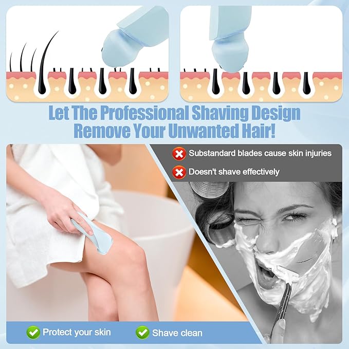 - 【Safe and Easy to Use】Say goodbye to razor burns and irritation. Our silk glide pro shaver uses hypoallergenic stainless steel blades to reduce the risk of shaving, making it easy to shave even sensitive skin. bikini razor, three-blade design, shave face, arms, legs, underarms and bikini area smoothly and effectively in minutes