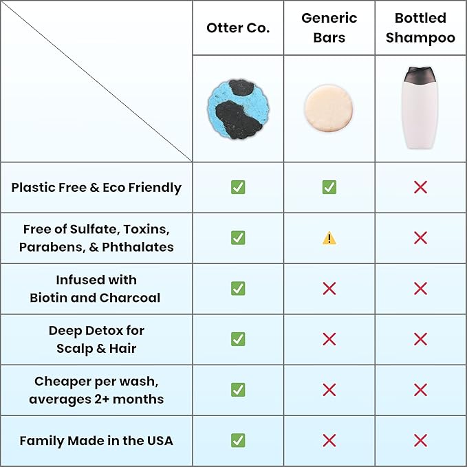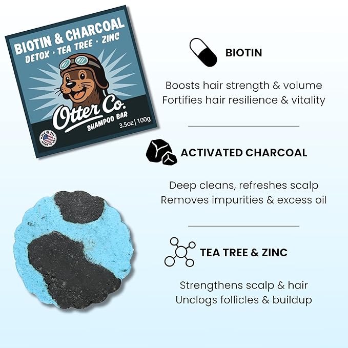 Otter co. Biotin Detox Shampoo Bar – Charcoal & Tea Tree Oil, Rosemary, Turmeric, Green Tea, Zinc – Vegan, Sulfate Free & Non Toxic – Women and Mens Shampoo, All Hair Types, Made in USA