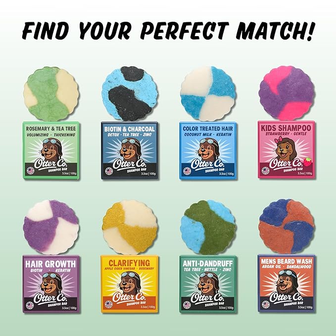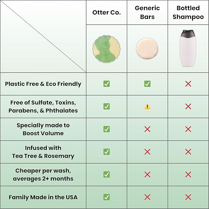 Otter co. Tea Tree and Rosemary Volumizing and Thickening Shampoo Bar - Olive Oil, Green Tea, Nettle, Zinc – Vegan, Sulfate Free & Non Toxic – Women and Mens Shampoo, All Hair Types, Made in USA