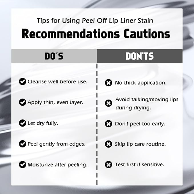 - EASY TO USE - Outline and fill in your lips with the lip stains. Wait for it to dry, then gently peel off for beautifully stained lips that last.(Warm Tip: For easier removal, apply two layers, avoiding the inner lip edges and contact with saliva. Wait 5 minutes for it to fully dry before peeling off.)