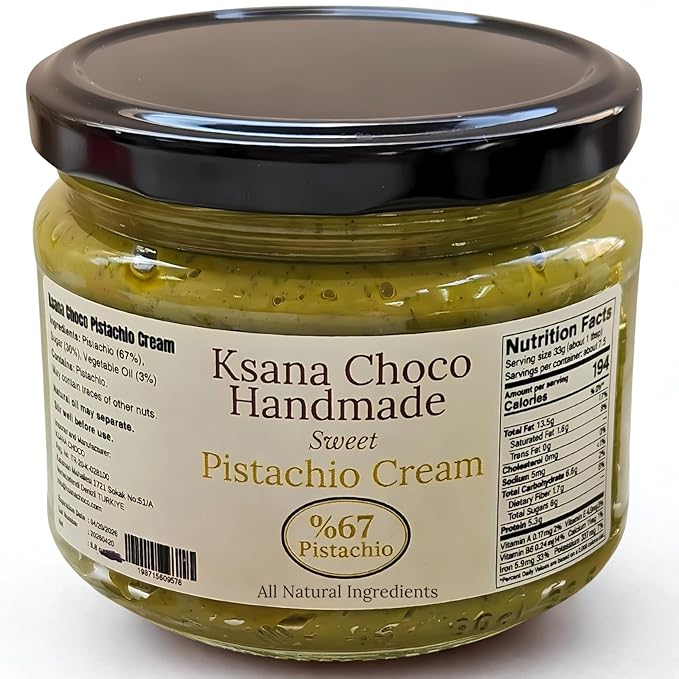 - 67% REAL TURKISH PISTACHIOS – Premium pistachio cream spread made with 67% pistachios. Pure nut flavor with no palm oil or preservatives. Delicious on toast, fresh fruit slices, ice cream, or straight from the jar.